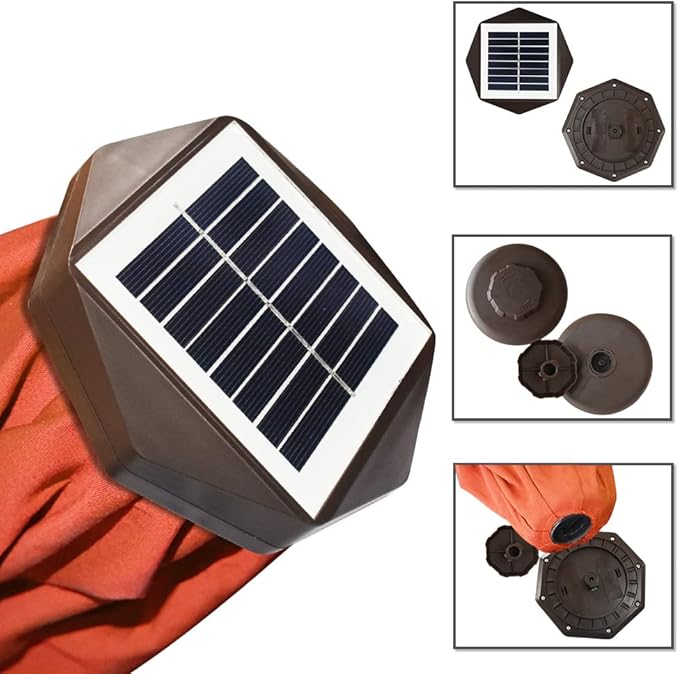 - LED Lighting From the Sun: Dual switched hub light and 80 rib lights, more than most LED lights of patio umbrellas on the market. More rib lights provide a brighter view. Built-in rib lights are not easy to damage and aging. Powered by a solar rechargeable battery.
