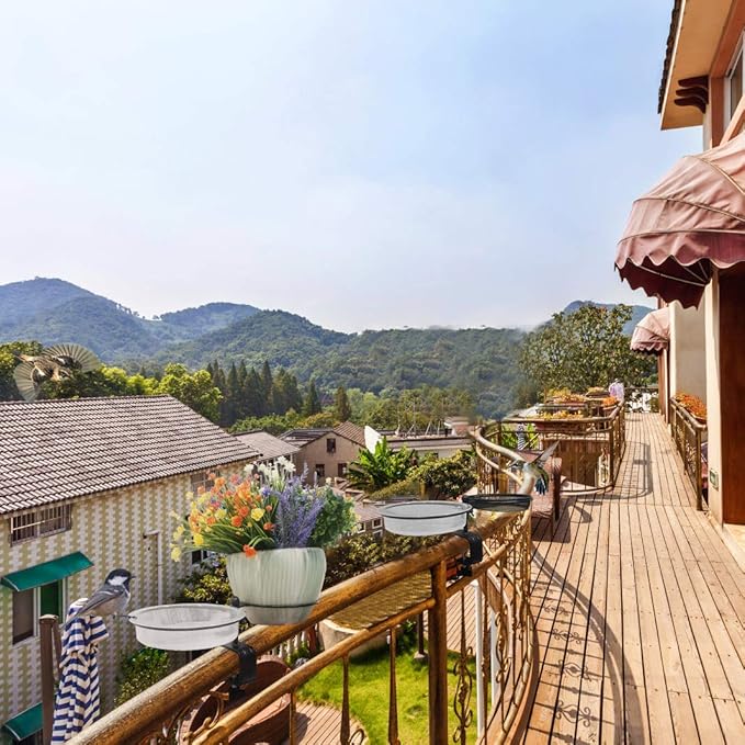 - Durable Material:This deck bird feeder is made of heavy duty thick steel,durable bronze powder coated to prevent rust and maintain long term durability,rust proof clamp with screw for securely mounting. The heavy-duty plastic transparent bowl is easy cleaning and filling. The transparent color enhances the visibility of clear water to attract wild birds.The other side bird feeder tray is crafted from heavy duty steel mesh with durable bronze powder coated for maximum all-weather durabilit
