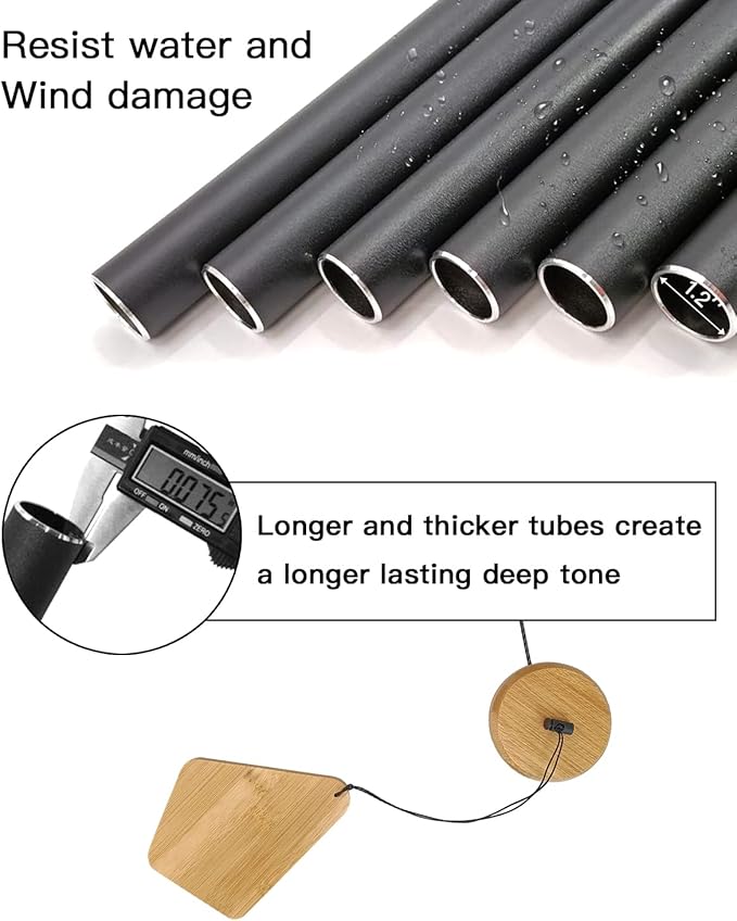 - Deep tone wind chimes- Each tube is precision tuned to pentatonic scale. Enjoy peaceful melodies that play as a whisper in the wind - deep tone, rich and full of beauty. They sound lovely so bring this wood wind chimes home today.