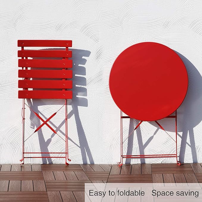 Grand patio 3-Piece Folding Bistro Set, 2 Chairs and 1 Table, Weather-Resistant Outdoor/Indoor Conversation Set for Patio, Yard, Garden -Dark Red