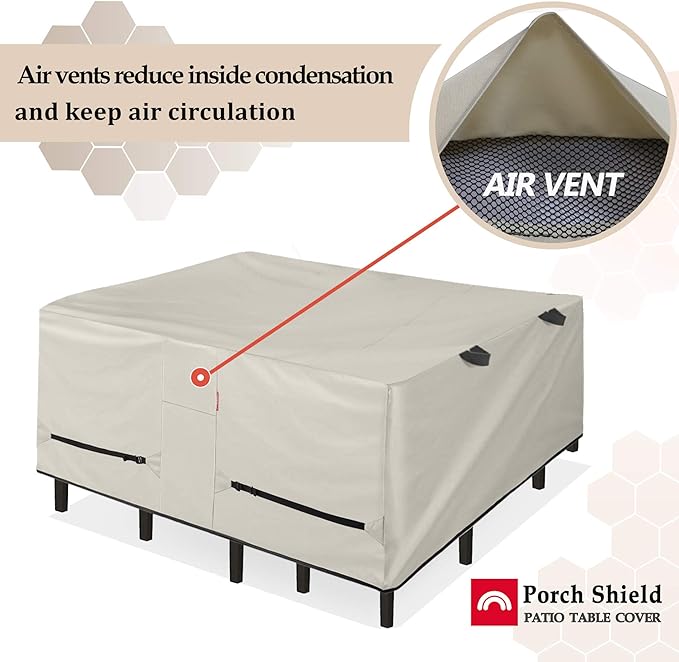 Porch Shield Patio Table Cover - Waterproof Outdoor Dining Table and Chairs Furniture Set Cover Square - 84 x 84 inch, Beige