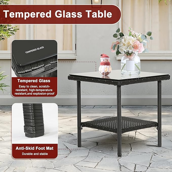 - ❤ Wide Applications : The patio bistro set is simple, stylish and perfect for decorating your yard, poolside, balcony, patio and home. This outdoor rattan set features an elegant glass topped side table, perfect for a couple glasses of wine or the morning coffee and newspaper.