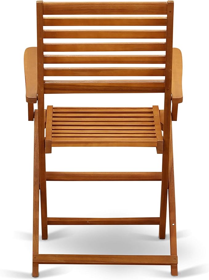 East West Furniture SEBS3CANA 3 Piece Folding Patio Bistro Sets Outdoor Set Contains a Square Acacia Wood Coffee Table and 2 Folding Arm Chairs, 26x26 Inch, Natural Oil