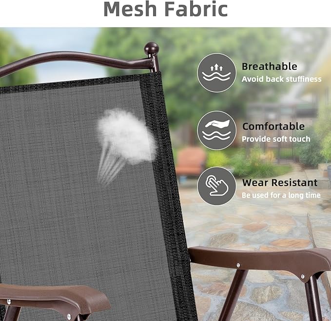 - 【Folding Design for Easy Carry:】In addition to providing comfy sitting experience, these outdoor patio chairs also save your outdoor space because of the foldable design. After fully folding, the compact size and lightweight structure allow you to move and store them effortlessly.