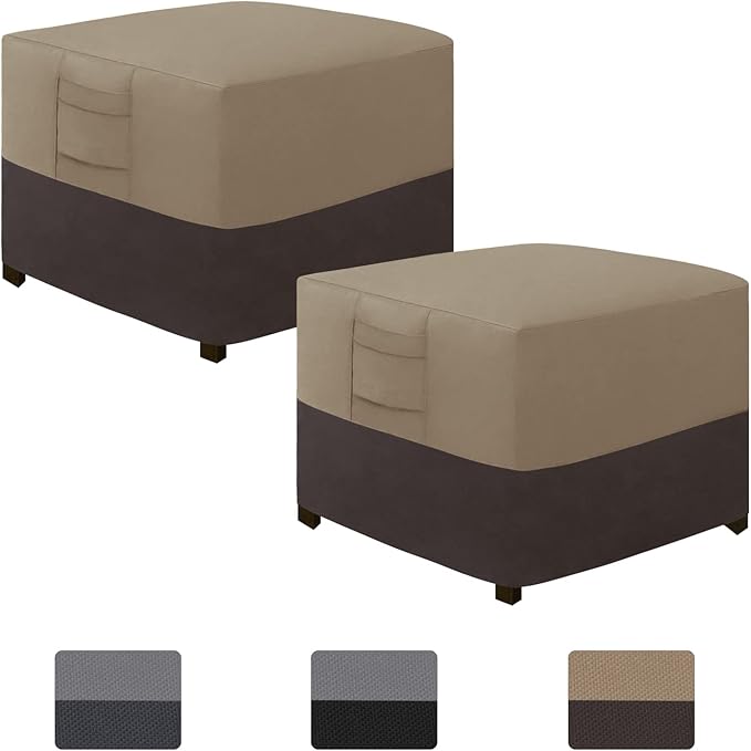 Easy-Going Outdoor Ottoman Cover, Waterproof Patio Ottoman Cover, Heavy Duty Outdoor Furniture Cover with Padded Handles (2 Pack-25"x25"x17", Camel/Dark Brown)