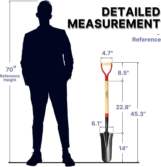 VNIMTI Spade Shovel,Transplanting Spade,Drain Spade,Spade Shovels for Digging,Sharp Shooter Shovel or Spade,45Inch,Stell D-Grip,Wooden Handle