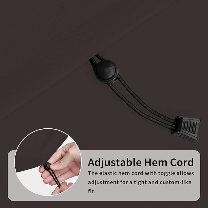 - Windproof Design: Fastening the 4 quick-release buckles in each corner to table leg can prevent the cover from being blown off on windy days. Elastic hem cord with toggles allows adjustment for a tight custom fit. The air vent is designed for reducing inside condensation and wind lofting.