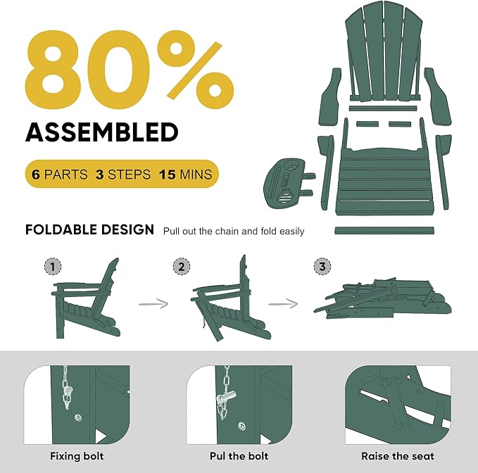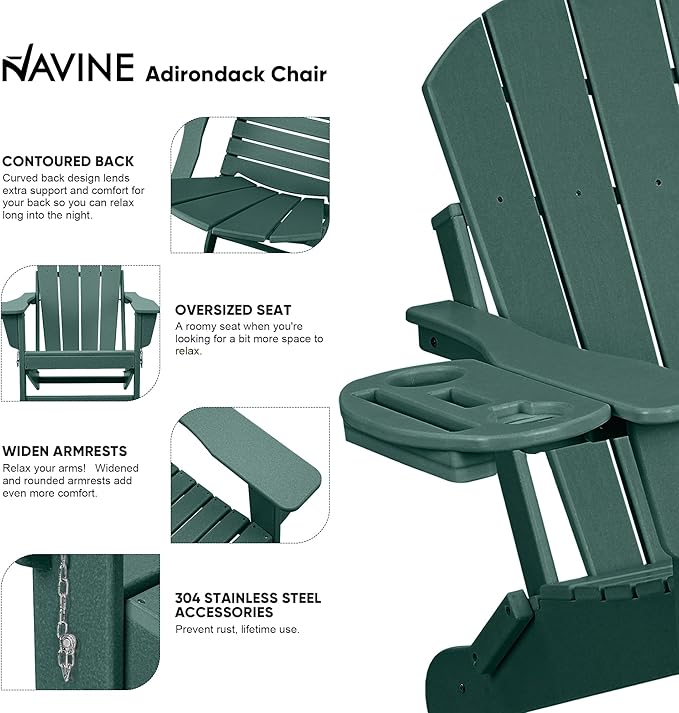 - ☘️【Strong and Durable】Our Adirondack chairs are made from all-weather materials to withstand all seasons and a range of climates, including hot sun, snowy winters, salt spray and strong winds. Will not fade, chip, crack, peel or rot. It's clear and clean with just water and soap, no need to paint, stain or waterproof.
