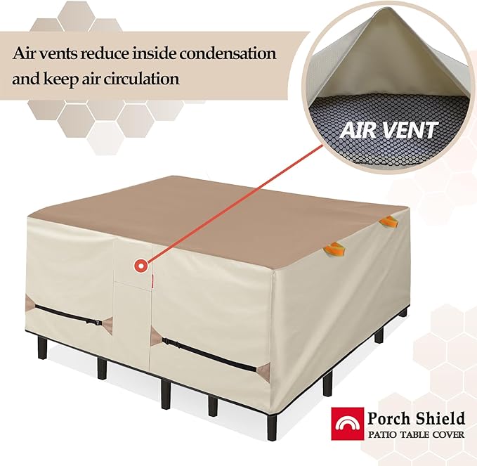 Porch Shield Patio Table Cover - Waterproof Outdoor Dining Table and Chairs Furniture Set Cover Square - 96 x 96 inch, Light Tan & Khaki
