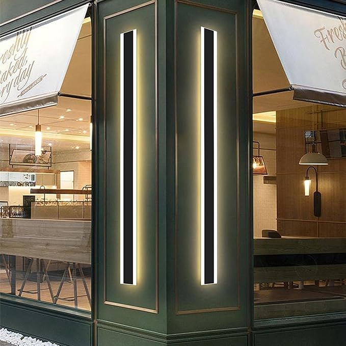 Mikeru Modern Long LED Wall Light, 3000k-6000k Dimmable Outdoor Wall Sconce 78.8inch Black Outdoor Exterior Lights with Remote Control Ip65 Waterproof Anti-Rust Linear Long Porch Lights