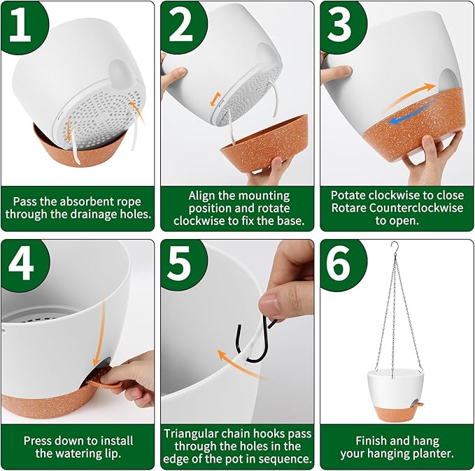 - 【Excellent Drainage Holes and Watering Lip】These flower pots for plants come with multiple drainage holes in the bottom. The holes and watering lip provide an air circulation system for the plant roots, which greatly reduces the problem of root rot of plants in a closed environment. The independent watering lip replenishes water for plants, so that water does not have to pass through the plant itself, At the same time, it is convenient to observe the current water level.