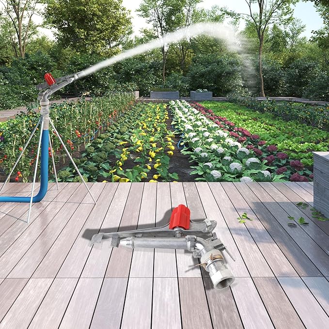 - WIDE APPLICATION - Our irrigation spray gun is mainly used for large-scale agricultural sprinkler irrigation for farms, seedlings, vegetables, etc.; gardening sprinkler irrigation for lawns, courtyards, gardens, etc.; industrial sprinkler irrigation, factories, mines, dust removal, roof or plant cooling, urban greening and fire prevention, etc.