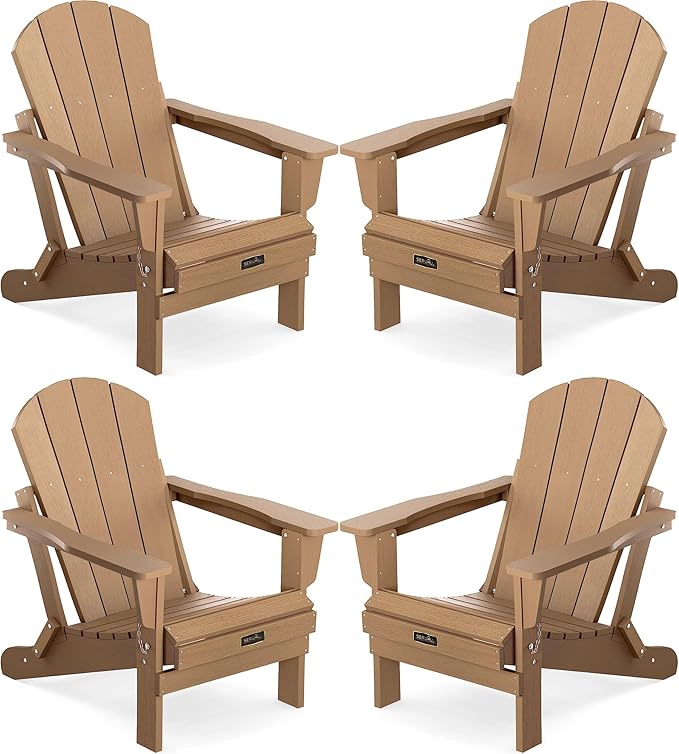 SERWALL Folding Adirondack Chair Set of 4 Outdoor Chairs Painted Adirondack Chair Weather Resistant for Patio Deck Garden, Backyard Deck, Fire Pit- Brown