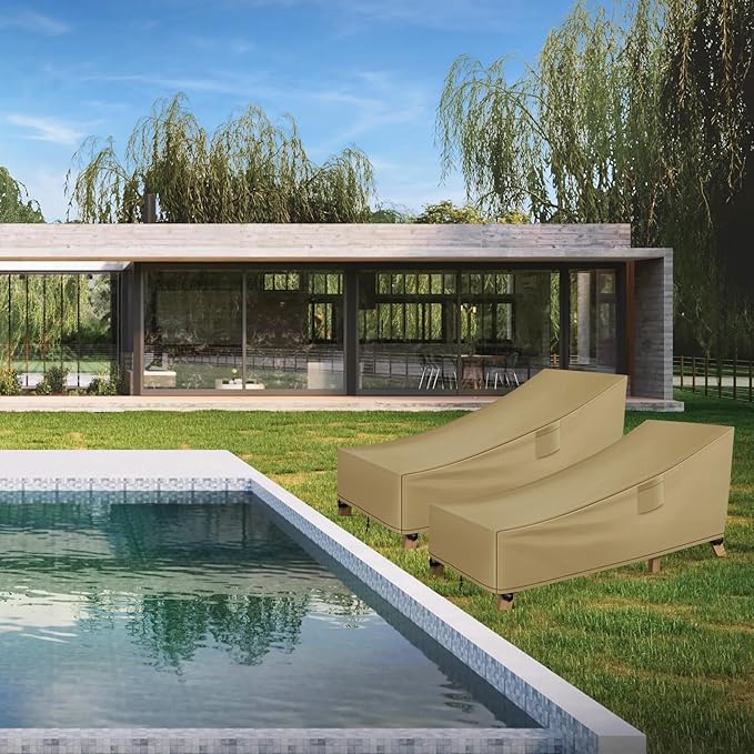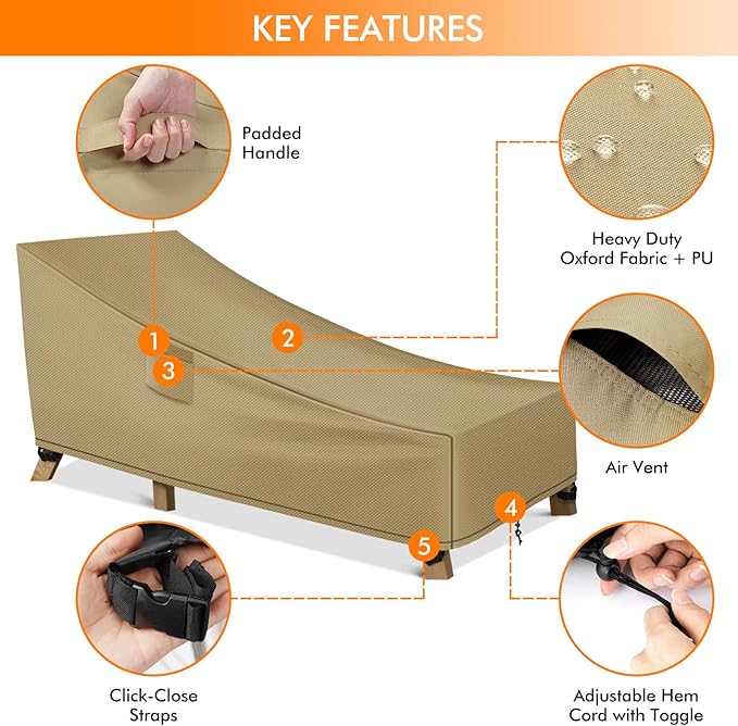 WLEAFJ Patio Chaise Lounge Cover Waterproof, Heavy Duty Outdoor Lounge Chair Covers, Durable Patio Furniture Covers, 78L x 34W x 32H inch,Khaki