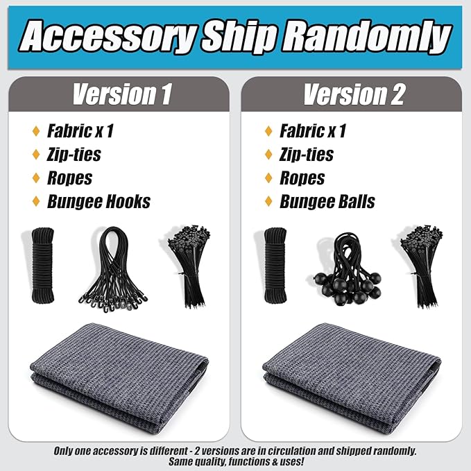 - Easy to Install: Attach to the fit size structure with zip ties or bungee balls (this shade cloth comes with 30 zip ties,12 bungee balls,and 6 nylon rope as a bonus); strapped it down on the pergola or patio with screws for more stable