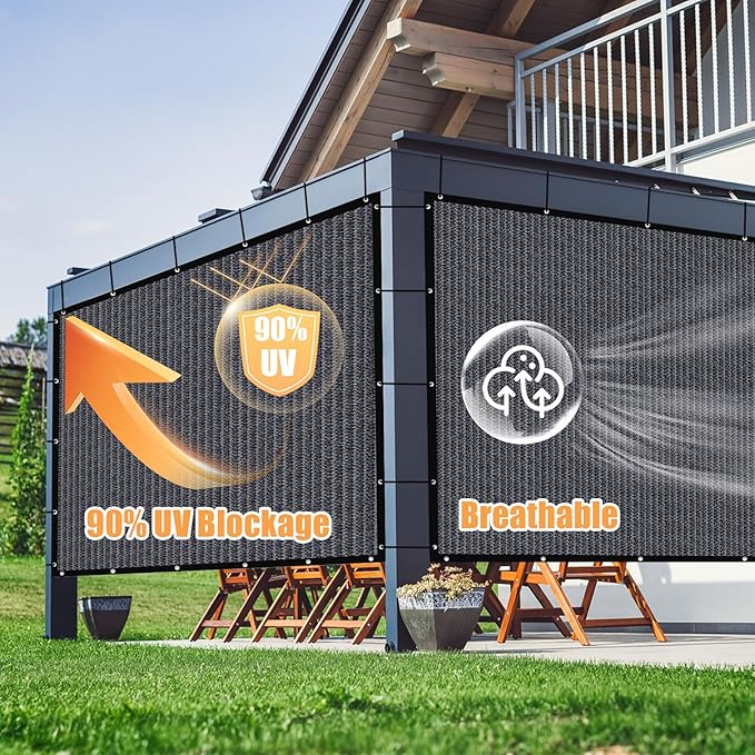 - Premium Shade Fabric: The pergola shade cloth is made of 200 GSM UV protected high density polyethylene (100% HDPE) shade fabric with strong stitched seam that resists tearing and fraying, up to 90% UV Blockage