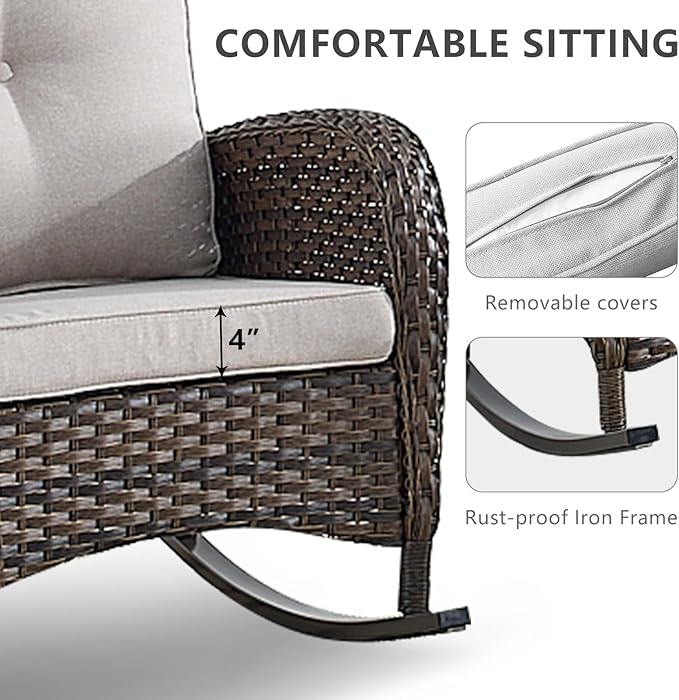 - Multi combination and function:This series of outdoor furniture set includes a variety of combinations, including functions such as swivel and glider chairs,rocking chairs,glider loveseat,suitable for a variety of scenarios,garden,balcony,deck,patio,porch,poolside,yard,corridors,sunrooms,etc.