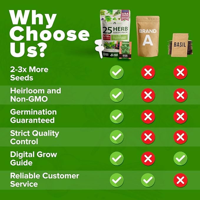 - USA Grown & NON-GMO – Premium heirloom herb seeds sourced in the USA. Safe, natural, and ideal for health-conscious gardeners and families.