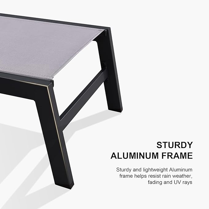 - Aluminum Frame: This patio lounge chair set is made of high-quality aluminum material, with sturdy structure and durability. Features a weather-resistant powder-coated finish, can effectively prevent rust.