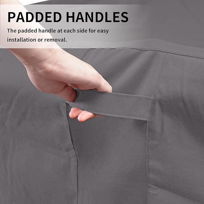 - Weatherproof: The patio furniture cover is made of heavy-duty oxford fabric, which is durable for long time use, offering protection from natural damage like sun, dirt, rain, snow, etc. Keeping your furniture set to be safe, clean and dry.