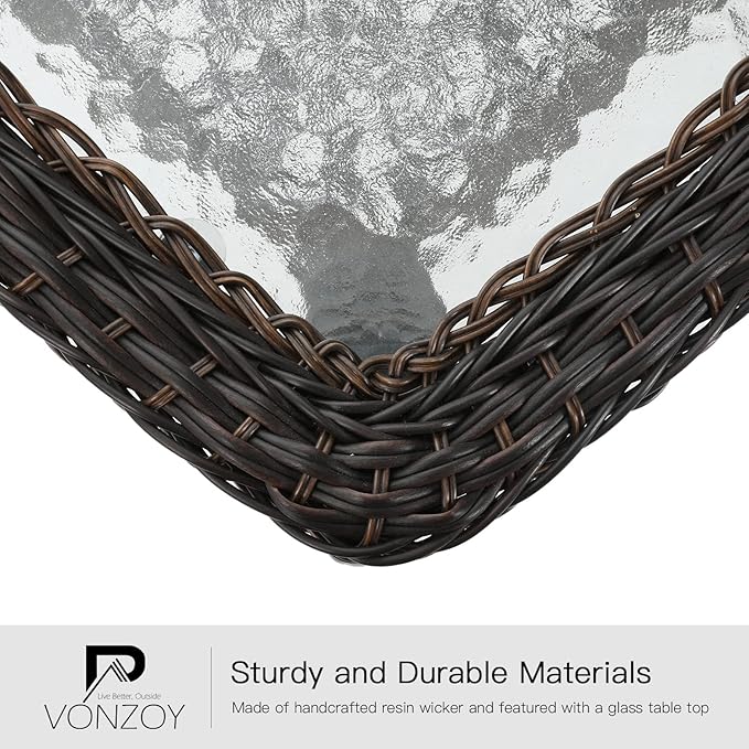 - 【Sturdy and Long-Lasting】Weight capacity: 360 lbs. The tempered glass table can be used for a long time as long as it is maintained simply. Each porch furniture is made of long-lasting outdoor fabric which is convenient to remove.
