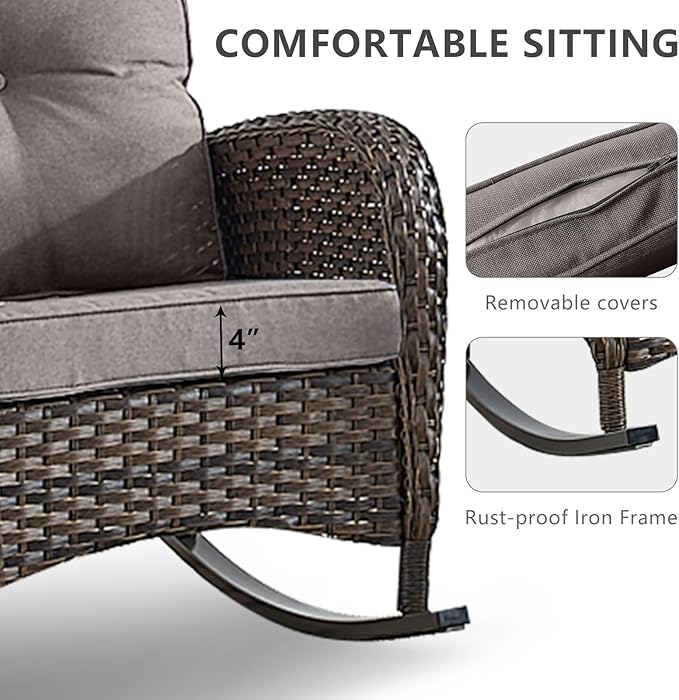 - Multi combination and function:This series of outdoor furniture set includes a variety of combinations, including functions such as swivel and glider chairs,rocking chairs,glider loveseat,suitable for a variety of scenarios,garden,balcony,deck,patio,porch,poolside,yard,corridors,sunrooms,etc.
