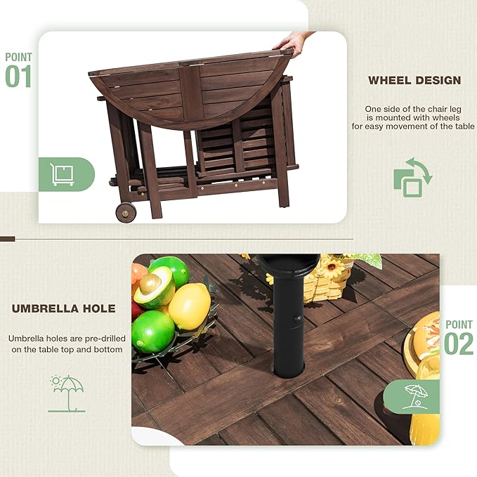 - - High Quality Raw Materials: Outdoor patio table and chairs are made of all-natural solid acacia wood. Acacia wood has the characteristics of corrosion resistance and insect protection, and has good stability. After polishing, the texture and touch are very good.