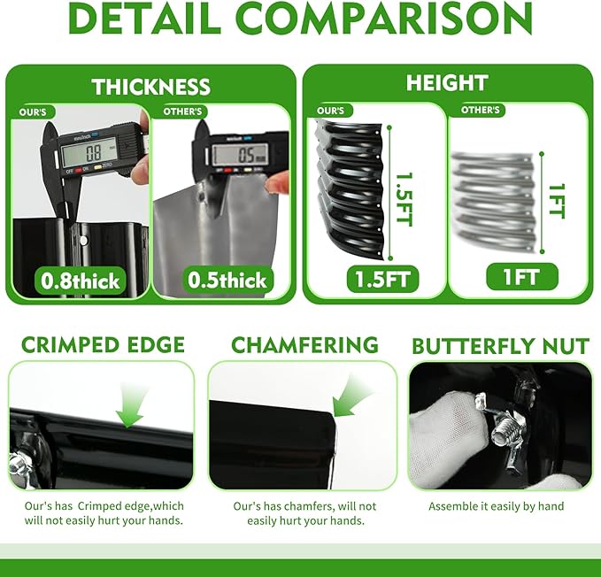 - Materials and Construction: The raised garden bed kit is constructed with sturdy metal 0.8mm thick, providing a reliable framework for your garden. The oval-shaped design adds a unique aesthetic,and the 17" height provides ample depth for plants