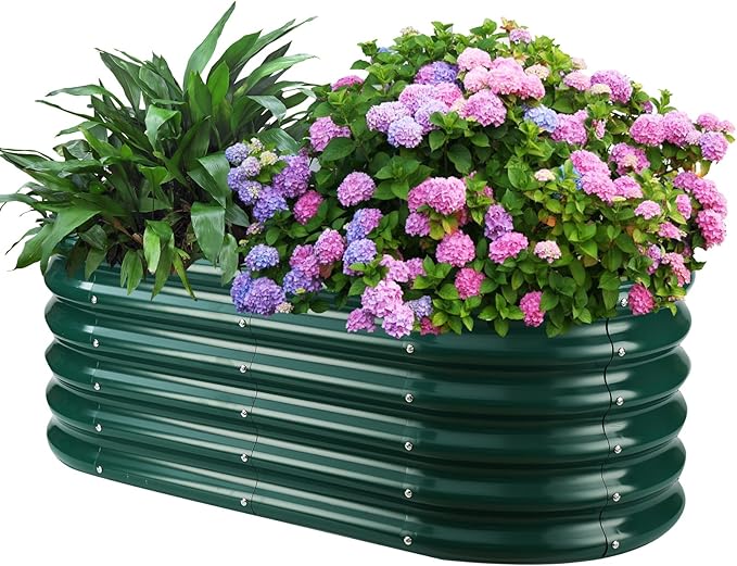 17" Tall Outdoor Garden Raised Garden Bed Kits, 4ft X 2ft Oval,0.8MM Thick Metal Raised Planter Bed/Ground Planter Box for Variety of Flowers,Herbs,Vegetables (Dark Green, 48X24X16.5 Inches)