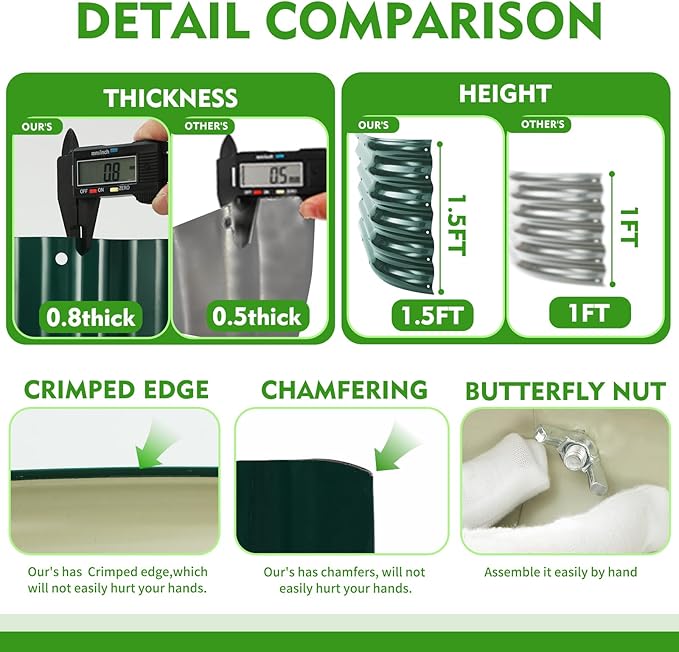 - Materials and Construction: The raised garden bed kit is constructed with sturdy metal 0.8mm thick, providing a reliable framework for your garden.The round-shaped design adds a unique aesthetic,and the 17" height provides ample depth for plants