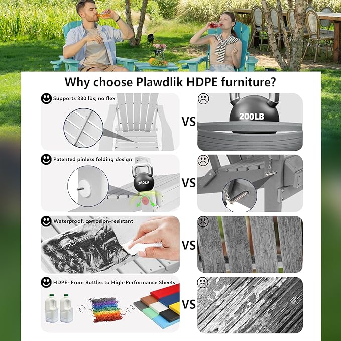 - ☘️【aesthetics】 When you put Plawdlik adirondack chair set of 2 or 5 together, you will be surprised to find that they all basically keep the same color and texture,Will make the overall aesthetics of your patio stronger