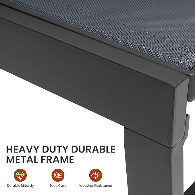 - Long Lasting & Easy Care: The back and seat fabric are made of UV-resistant breathable Textilene fabric for long lasting use, water and oil proof, quick dry and easy maintenance. Pls kindly wipe the water off and drain the water to prolong its service time. This chaise lounge is easy to be assembled, only need to assemble 10 screws.
