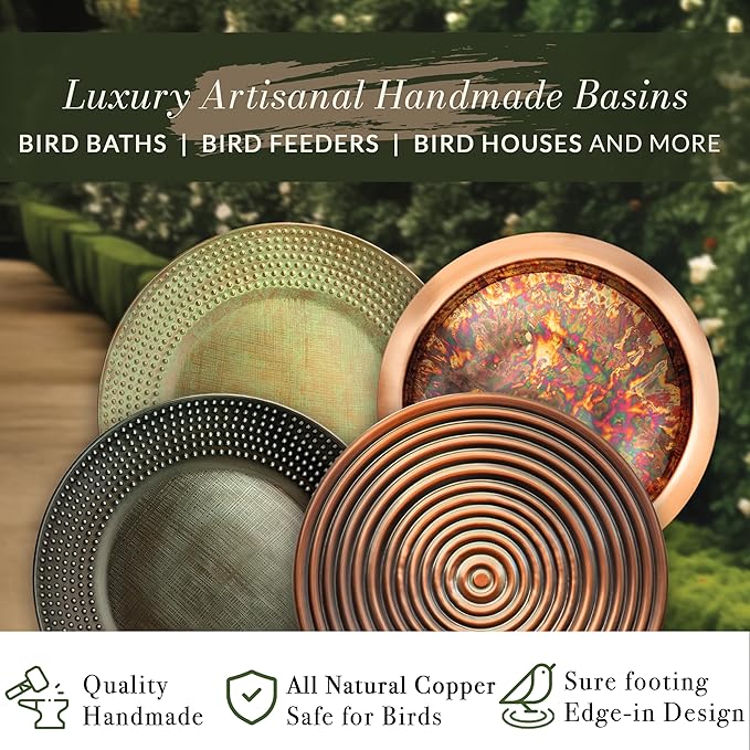 - SAFE FOR BIRDS: Copper baths are a bird's best choice. Natural lack of harmful coatings, and natural patina makes it reliable and ideal for bird habitat.