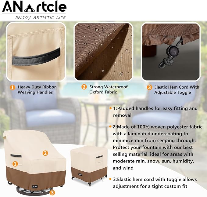 - Outdoor Chair Covers Waterproof-Made of 100% woven polyester fabric with a laminated undercoating to minimize rain from seeping through.