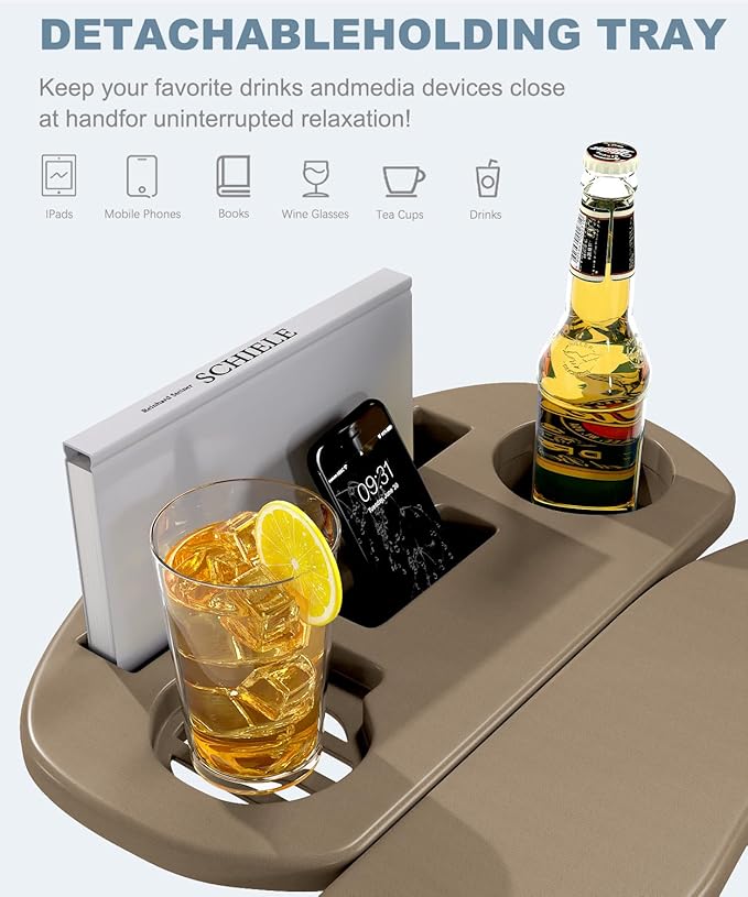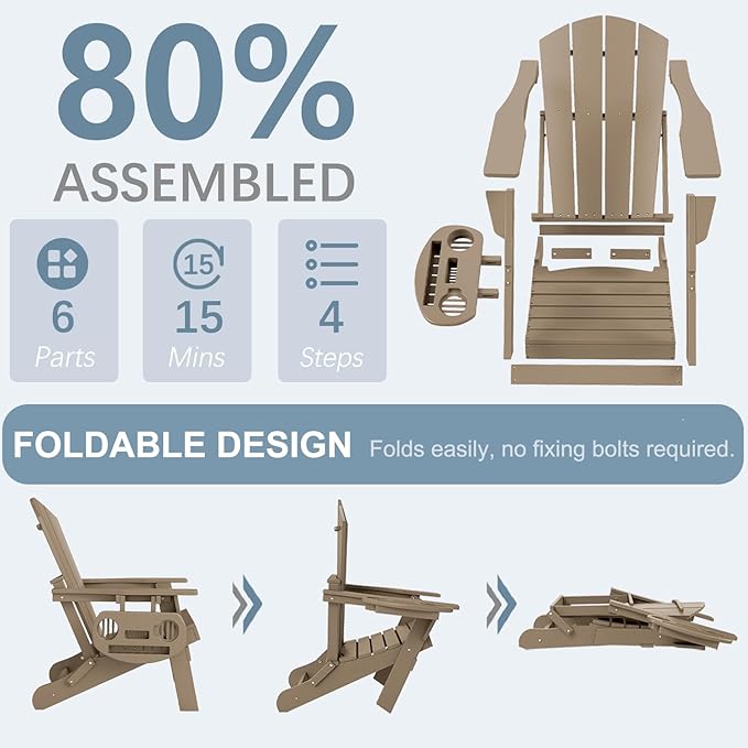 - ☘️【Multifunctional Cup Holder & Folding Function】We have improved upon the traditional Adirondack chair by installing a multifunctional cup holder on the right side of the chair. There's plenty of room for your favorite beverage or media device. It can store iPads, mobile phones, books, wine glasses, tea cups and drinks! Easy to fold, just remove the pins on both sides of the chair and it folds flat for easy transport and storage!