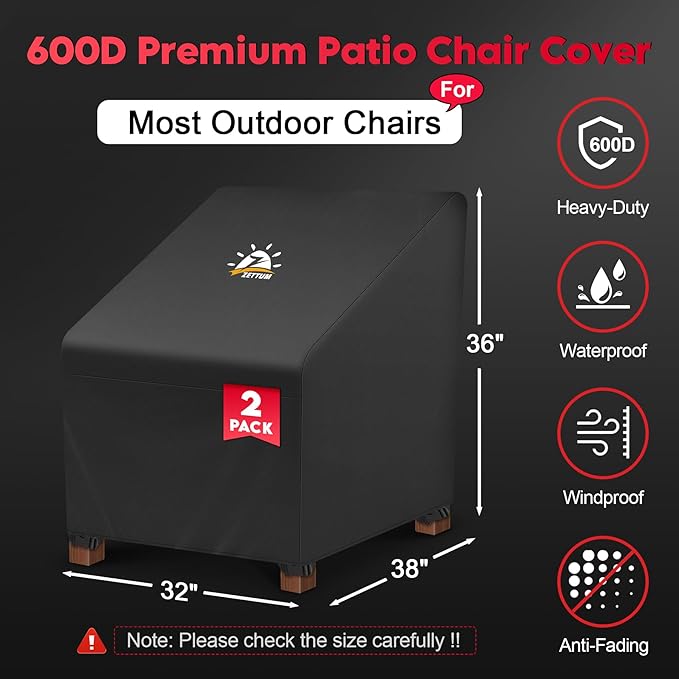 - | Premium Patio Chair Cover | - Measures 32" x 38" x 36" (Width x Depth x Height), Zettum patio chair covers are perfectly compatible with most outside chairs, like single sofa chair, wicker chair, rocking chair, adirondack chair, swivel chair, deep seat chair, and more. (Please check the size of your chairs carefully!)