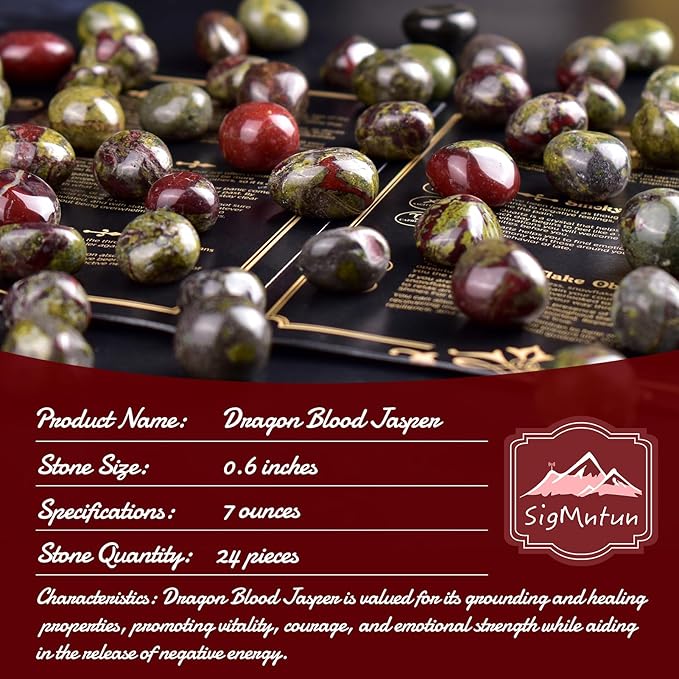 Polished Stone Set Dragon Blood Jasper Crystals, Handpicked Tumbled Gemstones Rocks, Pebbles for Reiki, Chakra, Healing, Home Decor 0.6" Inches 7 Ounces