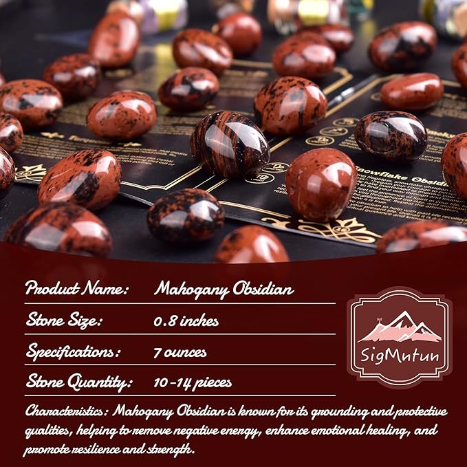Polished Stone Set Mahogany Obsidian Crystals, 0.8" Handpicked Tumbled Gemstones Rocks, Pebbles for Reiki, Chakra, Healing, Home Decor