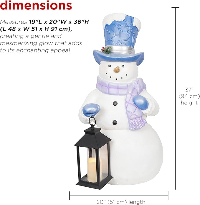 - Large, Eye-Catching Design: Measuring 19"L x 20"W x 36"H, this impressive snowman statue is perfect for porches, patios, entryways, or living rooms, making it a standout addition to your holiday décor.