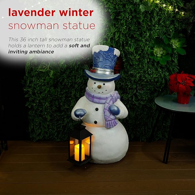 - Charming Winter Décor: Add a festive touch to your indoor or outdoor holiday setup with this large Lavender Winter Snowman holding a lantern.