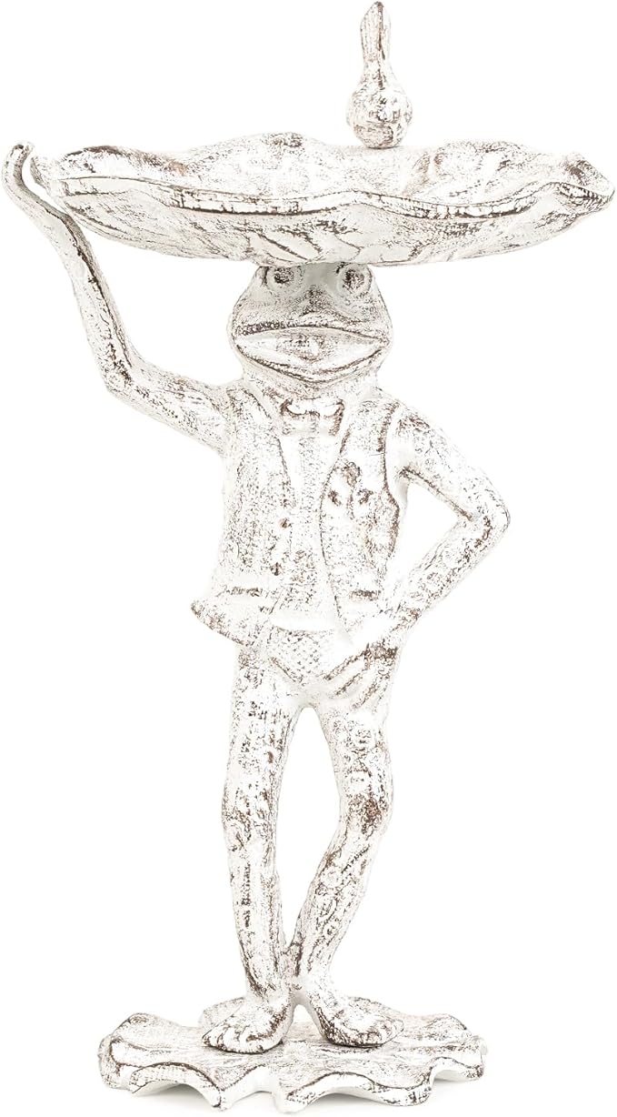 - Outdoor Statue: This decorative frog statue bird feeder or candy holder is a perfect addition to the garden, patio, lawn, coffee table. Providing visually attractive and functionality.