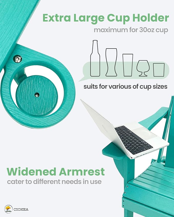 Ciokea Folding Adirondack Chair Wood Texture, Patio Adirondack Chair Weather Resistant, Plastic Fire Pit Chair with Cup Holder, Lawn Chair for Outdoor Porch Garden Backyard Deck (Lake Blue, 2Pack)