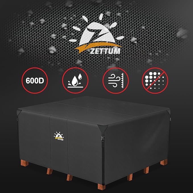 - | 600D Heavy-Duty & Super Waterproof | - Made of Premium 600-Density oxford cloth with PU coating, Zettum outdoor furniture covers are extremely heavy-duty and super waterproof. Compared with PVC type covers, our lawn furniture covers are more breathable and softer, hard to be torn. More importantly, PU-type coating is more environmentally friendly!!