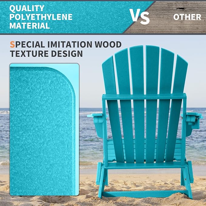 FUNBERRY Folding Adirondack Chair, All Weather HDPE Fire Pit Chairs with Cup Holder for Outdoor
