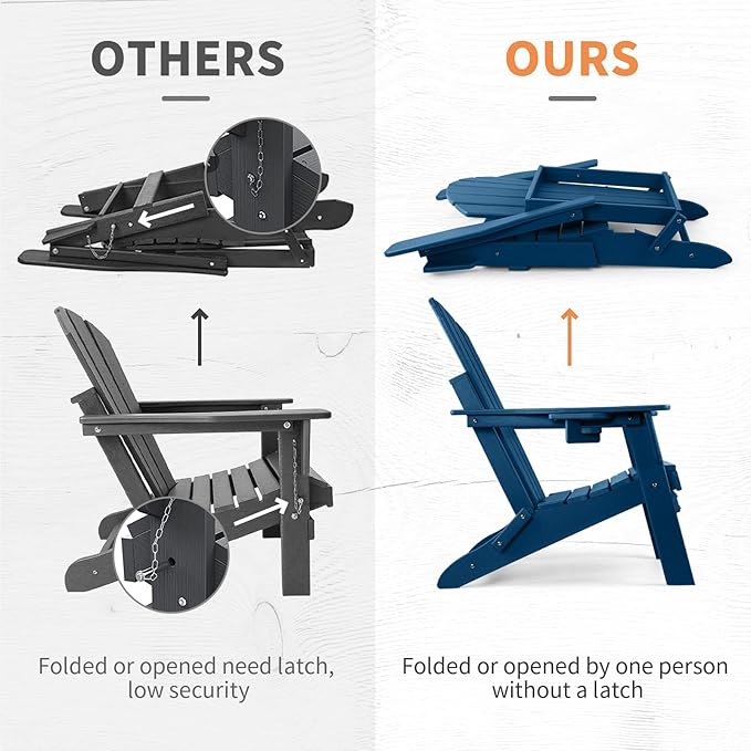- 【Practical Folding Design】-Our folding adirondack chair is designed to be folded which is convenient to move and store, so that when you don't need it, you can easily fold it up and store it in an underground garage, warehouse or storage room without taking up too much space.
