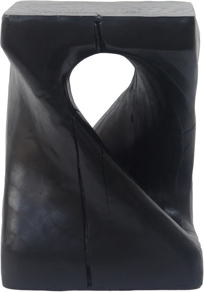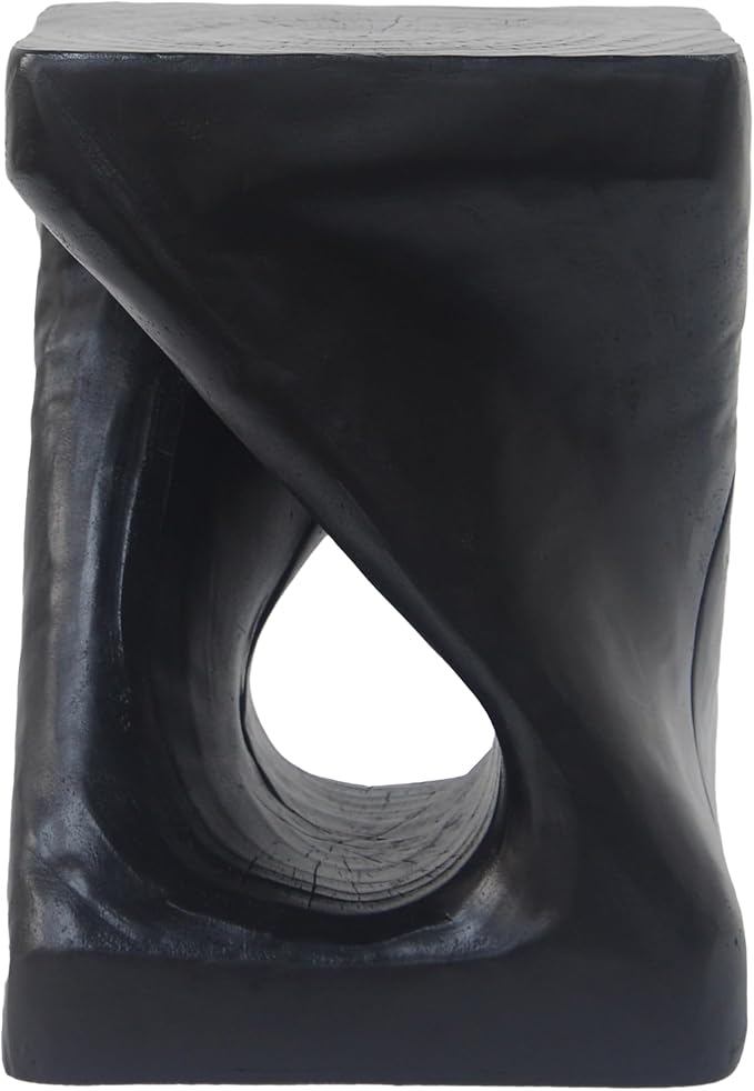 Christopher Knight Home Outdoor Side Table,Twist Shape End Table,Decorative Accent Table,Garden Stool Table for Patio Balcony Beach Pool Side,Lightweight Concrete,Wood Like Texture,Black