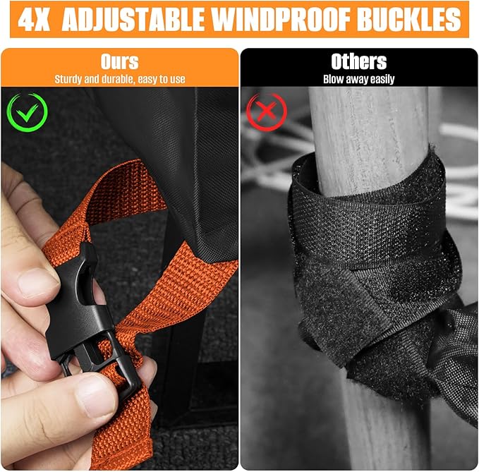 - 【Designed for Bad Weather】Equipped with an adjustable hem cord around the bottom, along with foot buckles and side clips, it ensures a snug fit to withstand strong winds. These waterproof outdoor table covers are also easy to install and remove.