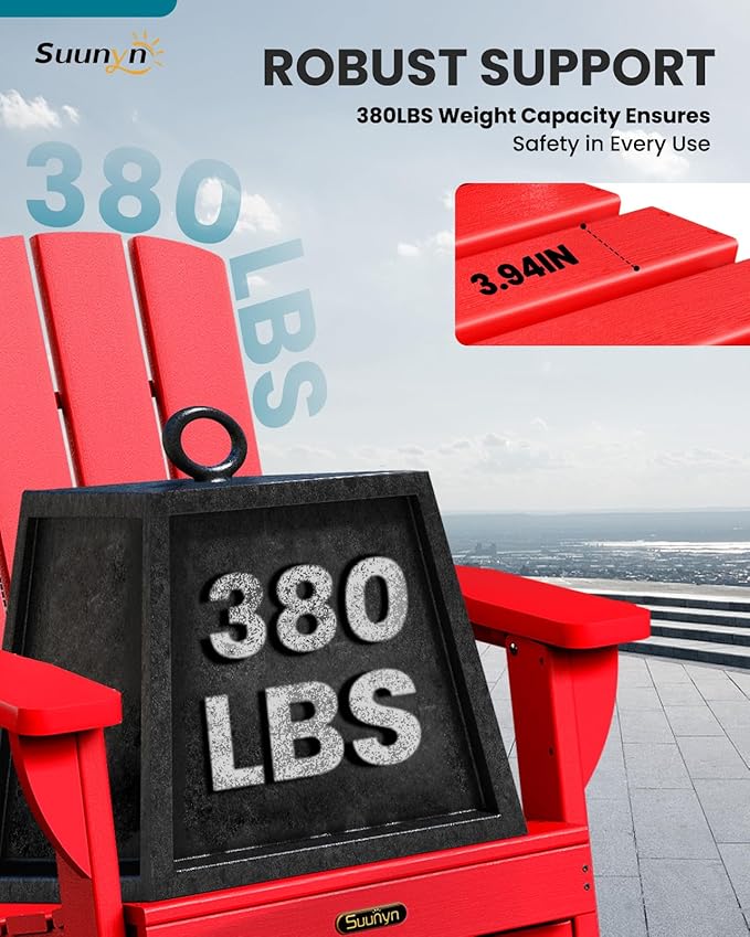 - WEATHER RESISTANT AND FADE-PROOF: Crafted from premium HDPE material, the SUUNYN adirondack chair features advanced color retention technology, ensuring it remains durable and resistant to fading, splitting, cracking, chipping, peeling, or rotting, even when exposed to harsh weather conditions