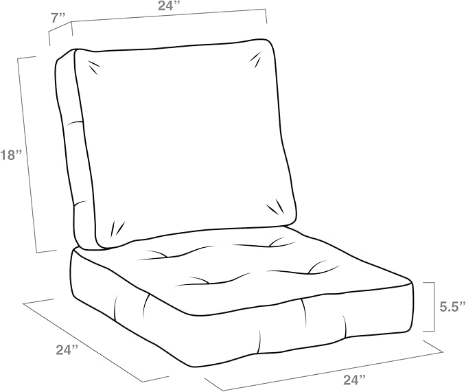 - Dimensions Pillow: 24in W x 18 in L x 7 in T and Seat: 24 in W x 24 in H x 5.5 in T