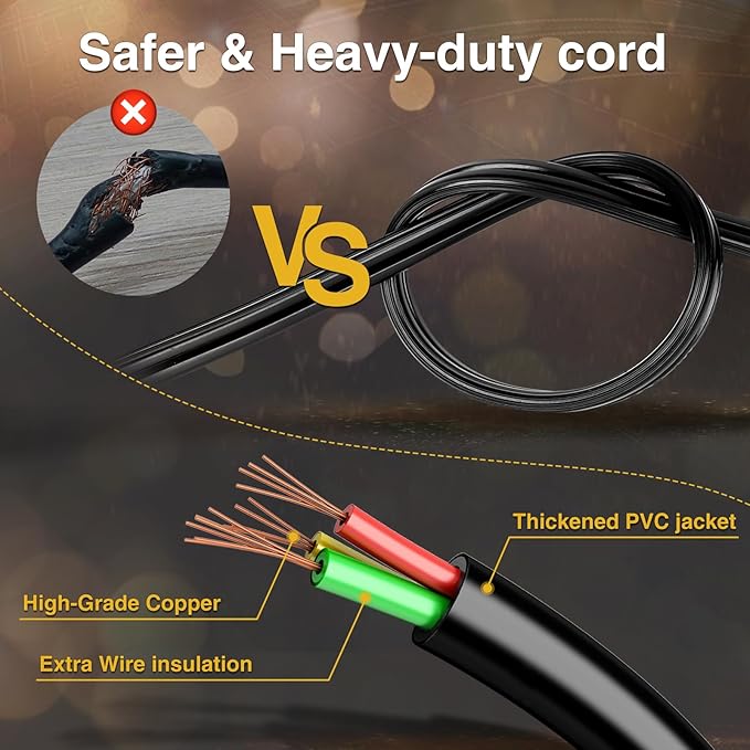 - 【Commercial-grade Waterproof Design & Shatterproof Globe Lights】With upgraded waterproof technology, the outdoor string lights can work even under extreme weather like heavy rain, snowstorm as well. What’s more, this waterproof solar powered patio lights are made of high-quality material, shatterproof and Sturdy, safe enough for hanging on such places as backyard deck and bistro, no need to worry about the bulb will break or hurt your kids when they play around it.